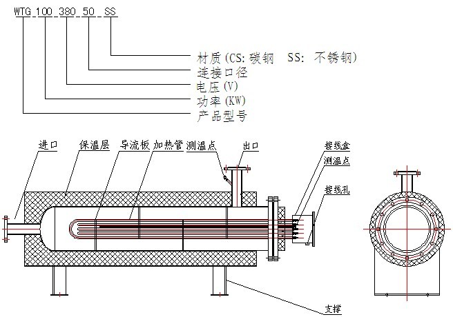 1。管道加熱器采用了不銹鋼筒體,體積小、占地少、移動方便,具有較強的抗腐蝕能力,在不銹鋼內膽和不銹鋼外殼之間采用了加厚保溫層,失溫程度最低,保持溫度,節省電能。